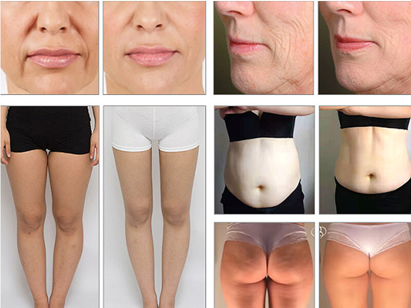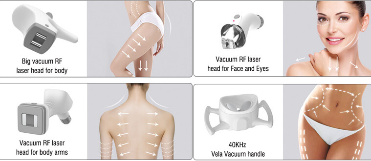 (2) El vacío, junto con rodillos especialmente diseñados, permite que la radiofrecuencia penetre de forma uniforme entre 5 y 15 mm. Al mismo tiempo, la manipulación mecánica del tejido mediante vacío y rodillos comprime y estira el tejido conectivo fibrilar, descomponiendo eficazmente la grasa subcutánea y los vasos capilares, aumentando el drenaje linfático, promoviendo el metabolismo y reduciendo el tamaño de las células adiposas, lo que mejora considerablemente el contorno corporal.