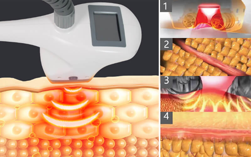 (1) El láser infrarrojo reduce la impedancia de la piel al calentarla, y la energía de radiofrecuencia penetra profundamente en el tejido conectivo. La combinación sinérgica del láser infrarrojo y la energía de radiofrecuencia aumenta la difusión intracelular de oxígeno al calentar la piel.